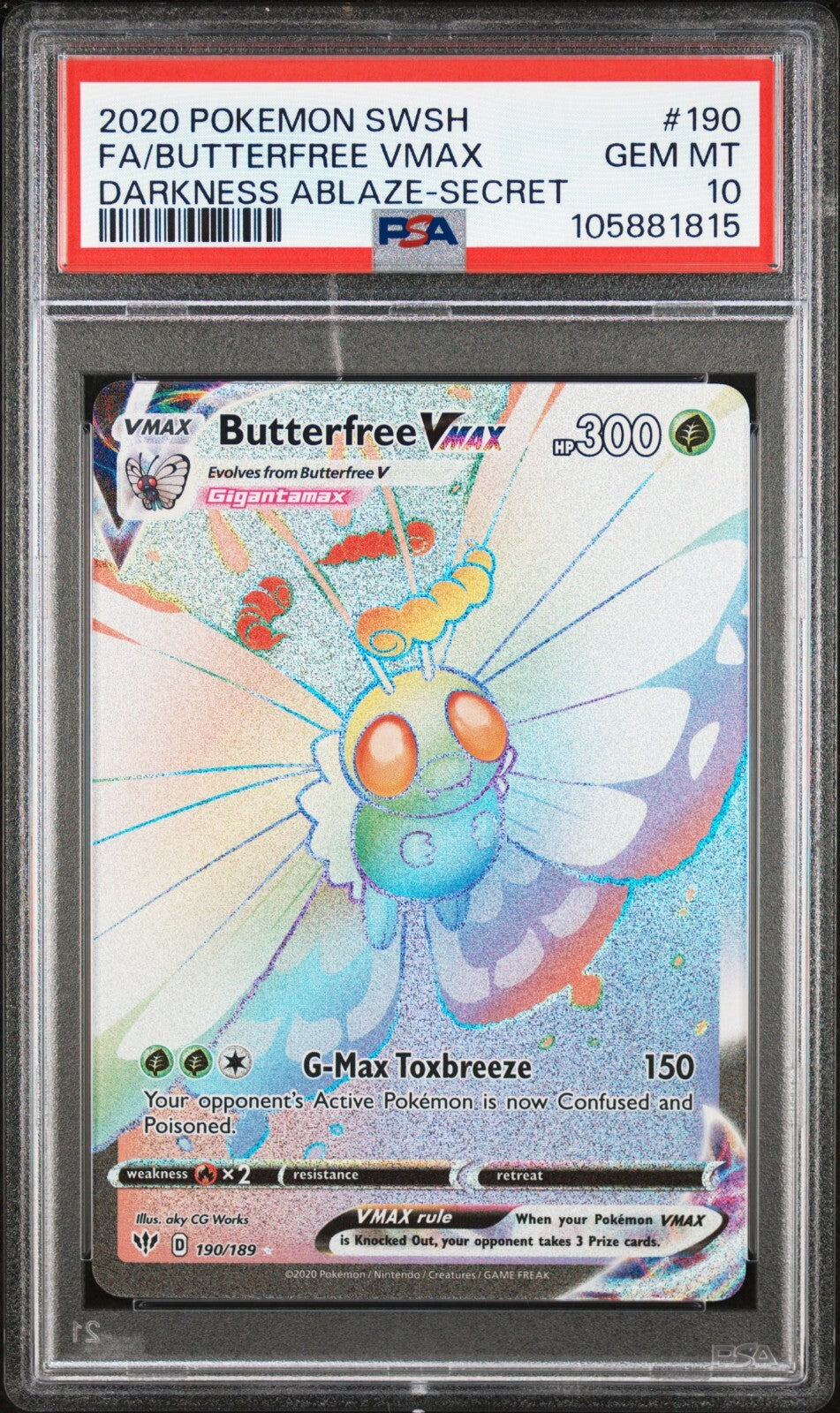 PSA 10 - Pokémon TCG Butterfree VMAX Darkness Ablaze 190/189 Holo Secret Rare